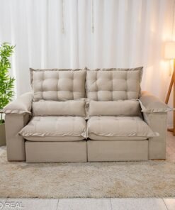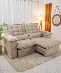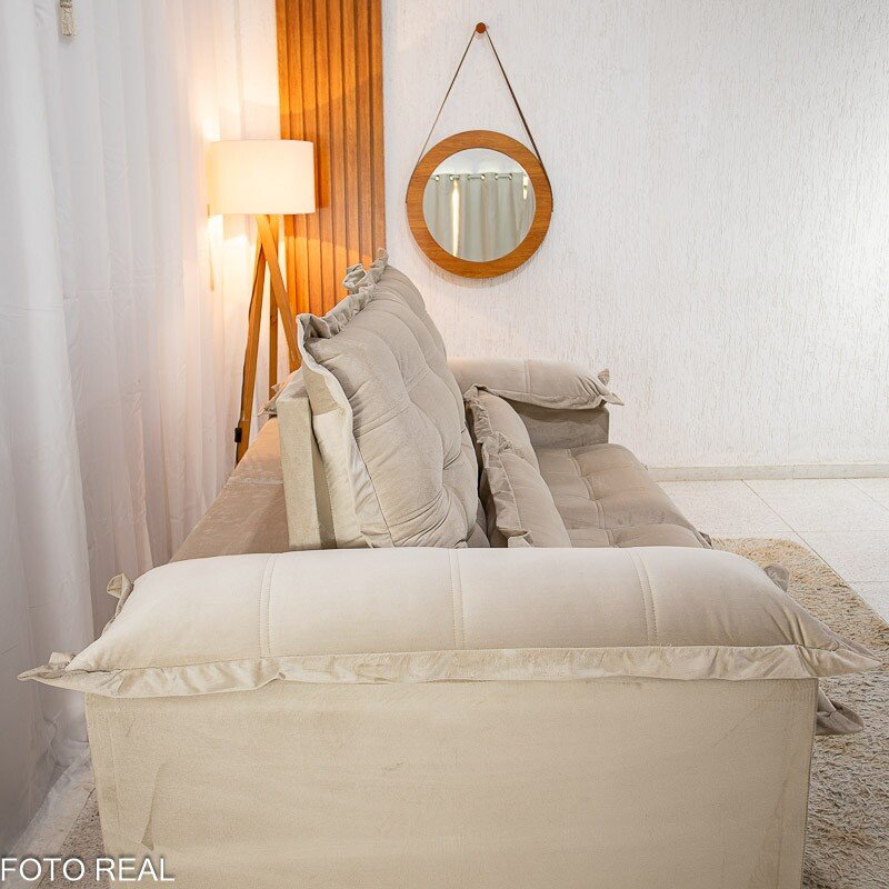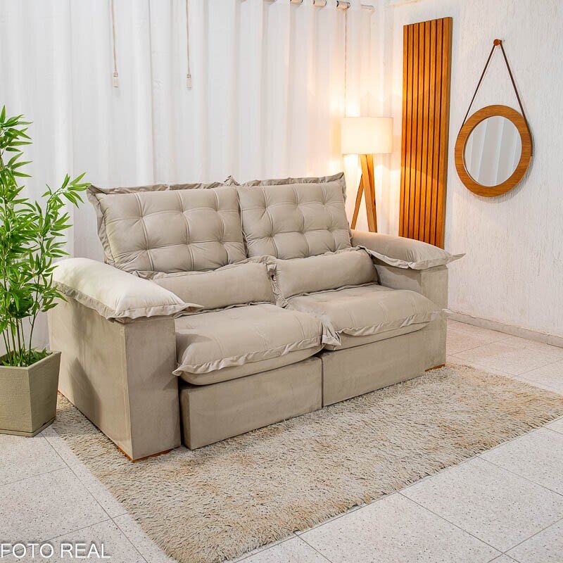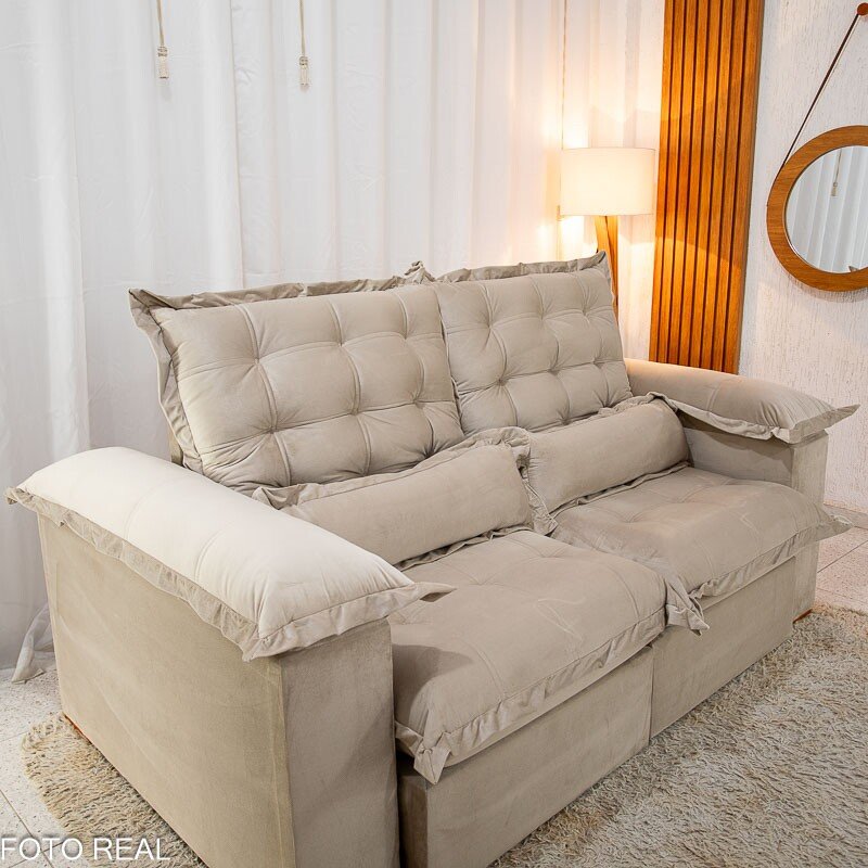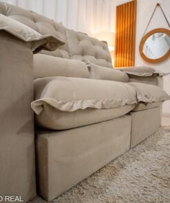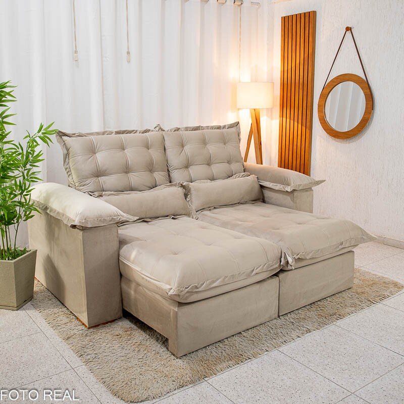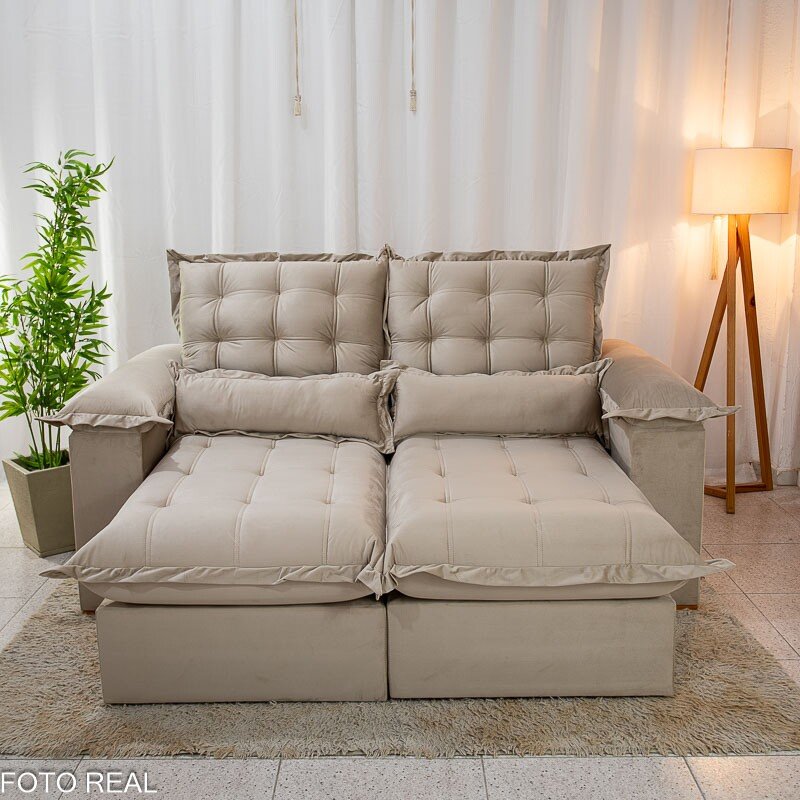 3{%%}Descrição{%%}Sofá Retrátil Reclinável Maldivas 2.10m Veludo Bege A32 – D28 Pró Aditivada