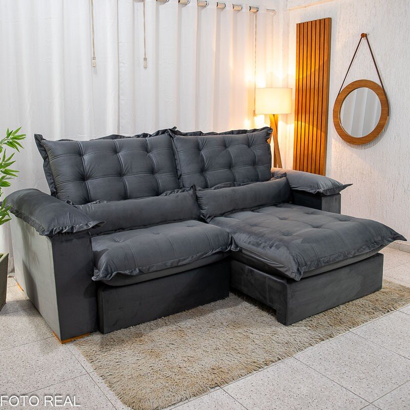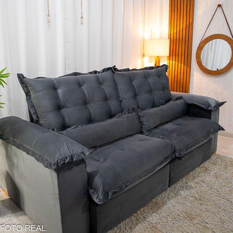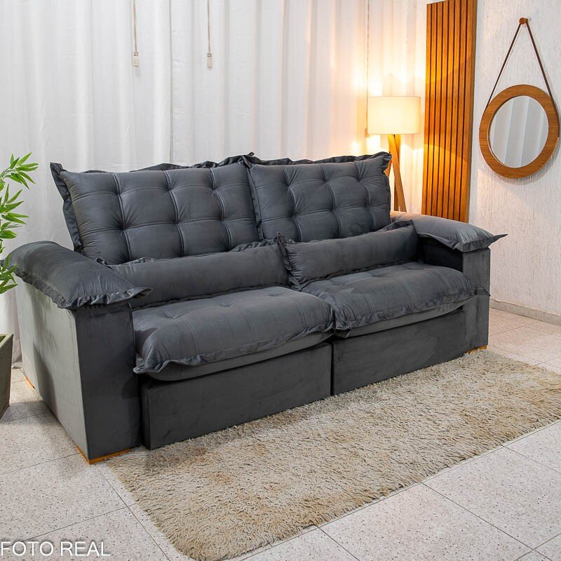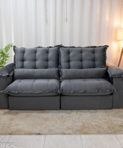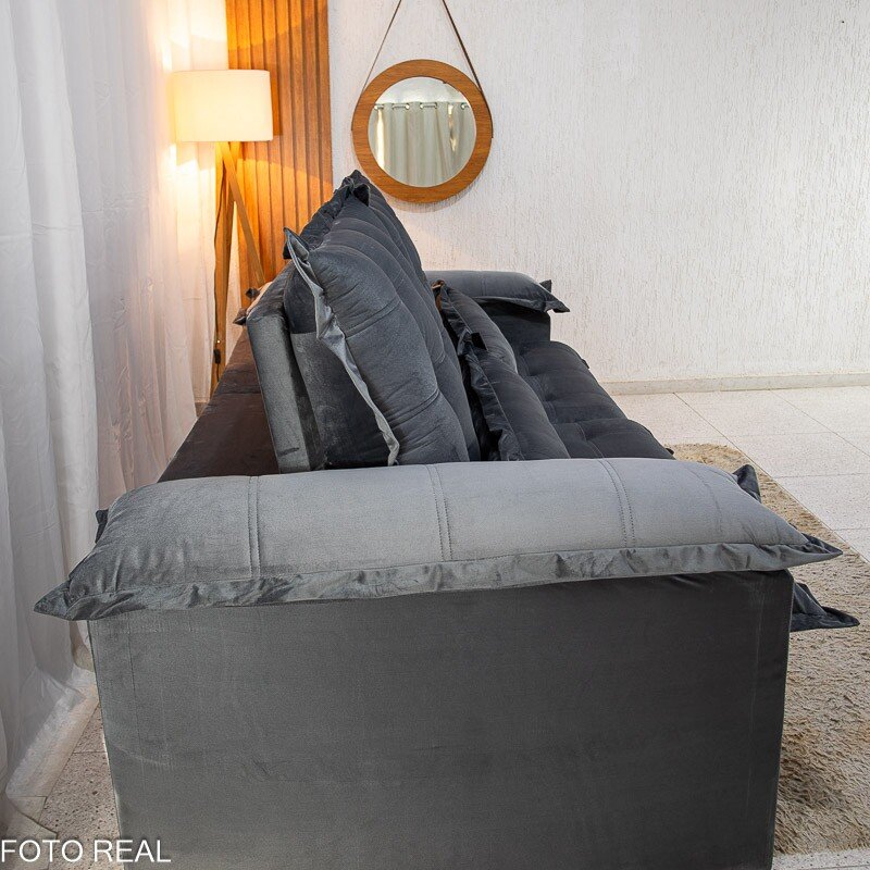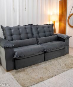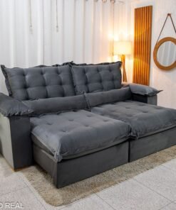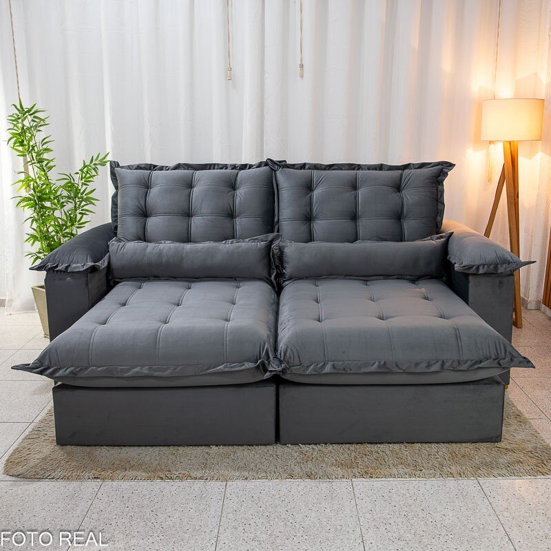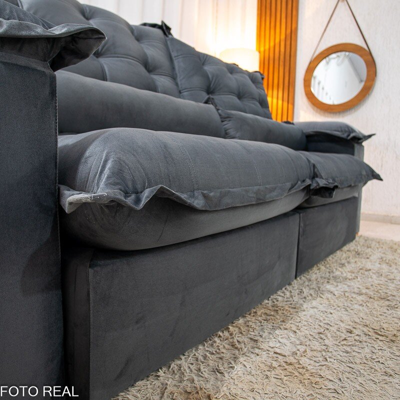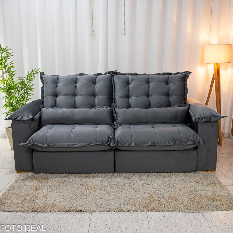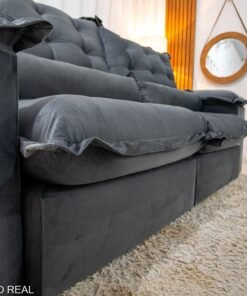 3{%%}Descrição{%%}Sofá Retrátil Reclinável Maldivas 2.30m Veludo Grafite A15 – D28 Pró Aditivada
