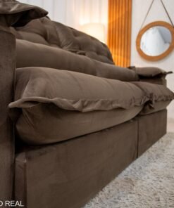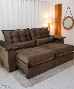3{%%}Descrição{%%}Sofá Retrátil Reclinável Maldivas 2.30m Veludo Marrom A17 – D28 Pró Aditivada