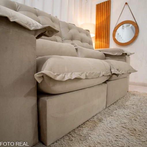 Informamos que é normal haver uma abertura entre os módulos dos sofás retráteis. Essa abertura é necessária para evitar atrito entre os módulos durante o movimento de abrir e fechar, prevenindo o desgaste do tecido.