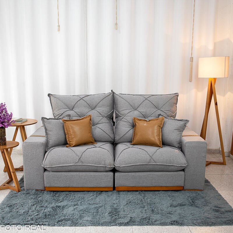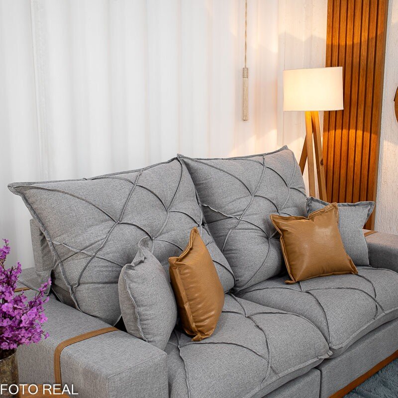 Sofá Retrátil Reclinável Malibu 2.10m Linho Cinza 1008 – D33 e Molas Ensacadas