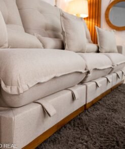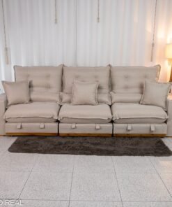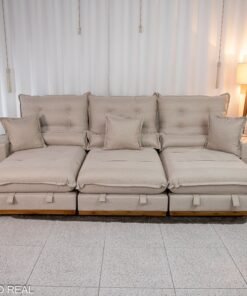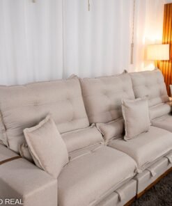 3{%%}Descrição{%%}Sofá Retrátil Reclinável Monaco 3.20m Linho Bege A57 – Molas Ensacadas