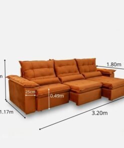 Sofá Retrátil Reclinável Mônaco 3.20m Linho Bege A57 – Molas Ensacadas