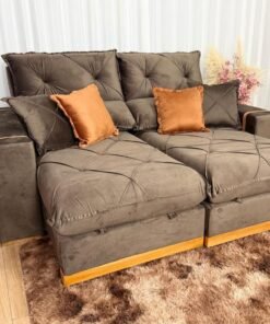 Um sofá indicado para pessoas com até 120kg.