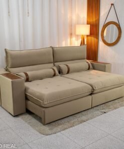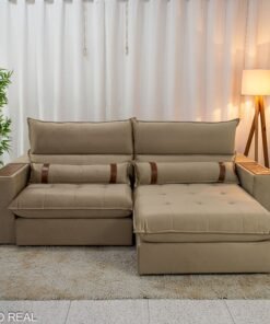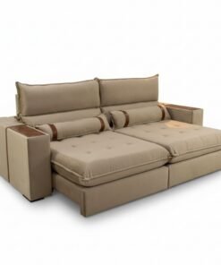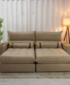 3{%%}Descrição{%%}Sofá Retrátil Reclinável Ravello 2.50m Veludo Bege 3040/04 – Molas Pockets