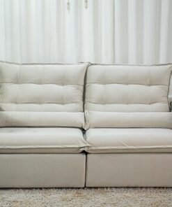 Sofá Retrátil Reclinável Atenas Veludo Bege 818 Larg. 2.30m – D33 e Molas Ensacadas