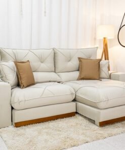Sofá Retrátil Reclinável Emanuelly Veludo Bege 01 Larg. 2.30m – D28 Soft