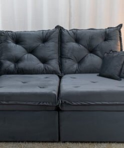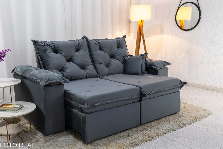 Sofá Cama Retrátil Tebas/Thebas/Gabriela 2,90 m Linho Grafite 301/Corino Dalas – ZARAT ESTOFADOS