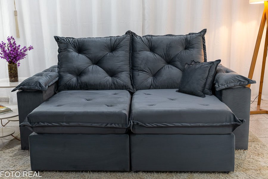 Sofá Retrátil e Reclinável Hércules/Zurique 2,90 m Veludo Preto – VICAM ESTOFADOS
