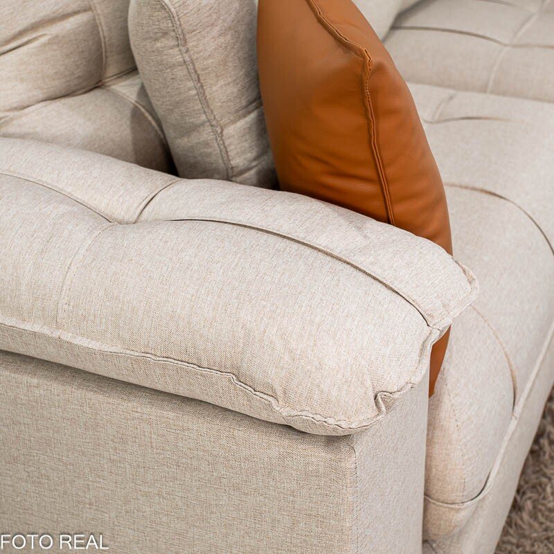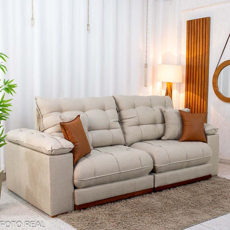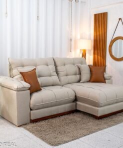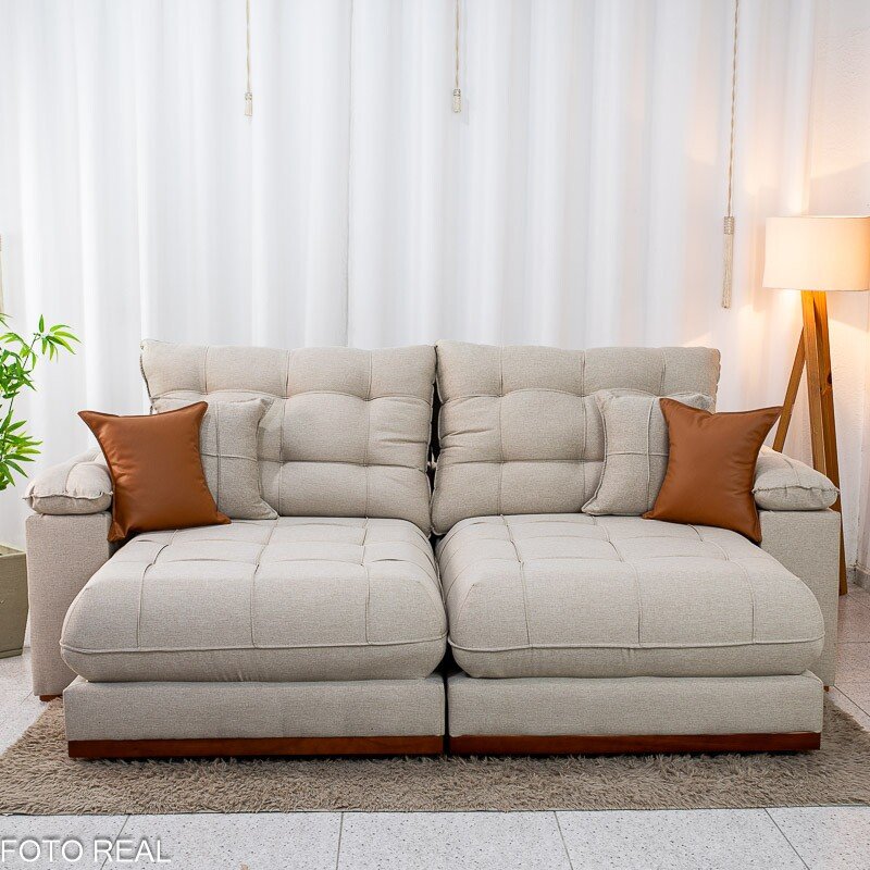 Sofá Retrátil Reclinável Verona 2.30m Linho Bege D28 Soft – Molas Ensacadas Medidas: – Largura: 2.30m – Altura: 1.09m – Assento fechado: 1.15m – Assento aberto: 1.80m – Altura do assento até o chão: 0.50m – Largura dos braços: 0.20m – Sofá retrátil para até 4 pessoas – Passa em portas de 0.75m Assento: – Tipo: Retrátil com corrediças em tubo de ferro – Pillow Top: 30 cm de espessura – Espuma: D28 Soft de alta densidade – Molejo: Molas ensacadas Pocket individuais – Sustentação: Madeira de eucalipto – Rodízios: Rodinhas siliconadas que facilitam o deslizamento Encosto: – Tipo de encosto: Reclinável com várias posições – Enchimento: Fibra de poliéster siliconado de alto conforto – Sistema de inclinação: Catraca de ferro blindado Braços: – Pillow Top de Fibra de poliéster siliconado Estrutura: – Tipo de madeira: Eucalipto de reflorestamento Revestimento: – Tecido: Linho Peso indicado: – Recomendado até 120 kg por pessoa Bônus: – Acompanha almofadas decorativas Aviso importante: Informamos que é normal haver uma abertura entre os módulos dos sofás retráteis. Essa abertura é necessária para evitar atrito entre os módulos durante o movimento de abrir e fechar, prevenindo o desgaste do tecido. As cores podem sofrer variações dependendo da luminosidade, tipo de câmera, ou mesmo a visualização das imagens em computadores ou notebooks com telas LCD ou LED, tablets ou smartphones dependendo da quantidade de pixls, podendo deixar as imagens com cores mais opacas ou cores mais vibrantes. Benefícios das molas ensacadas
