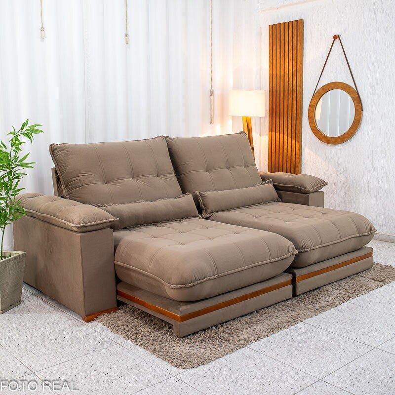 Sofá Retrátil Reclinável Verona 2.30m Linho Marrom D28 Soft – Molas Ensacadas