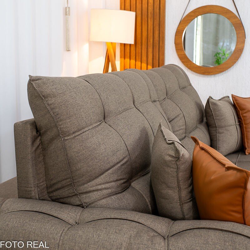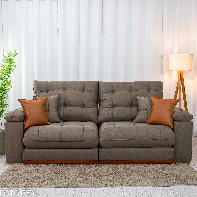 Sofá Retrátil Reclinável Verona 2.30m Linho Marrom D28 Soft – Molas Ensacadas Medidas: – Largura: 2.30m – Altura: 1.09m – Assento fechado: 1.15m – Assento aberto: 1.80m – Altura do assento até o chão: 0.50m – Largura dos braços: 0.20m – Sofá retrátil para até 4 pessoas – Passa em portas de 0.75m Assento: – Tipo: Retrátil com corrediças em tubo de ferro – Pillow Top: 30 cm de espessura – Espuma: D28 Soft de alta densidade – Molejo: Molas ensacadas Pocket individuais – Sustentação: Madeira de eucalipto – Rodízios: Rodinhas siliconadas que facilitam o deslizamento Encosto: – Tipo de encosto: Reclinável com várias posições – Enchimento: Fibra de poliéster siliconado de alto conforto – Sistema de inclinação: Catraca de ferro blindado Braços: – Pillow Top de Fibra de poliéster siliconado Estrutura: – Tipo de madeira: Eucalipto de reflorestamento Revestimento: – Tecido: Linho Peso indicado: – Recomendado até 120 kg por pessoa Bônus: – Acompanha almofadas decorativas Aviso importante: Informamos que é normal haver uma abertura entre os módulos dos sofás retráteis. Essa abertura é necessária para evitar atrito entre os módulos durante o movimento de abrir e fechar, prevenindo o desgaste do tecido. As cores podem sofrer variações dependendo da luminosidade, tipo de câmera, ou mesmo a visualização das imagens em computadores ou notebooks com telas LCD ou LED, tablets ou smartphones dependendo da quantidade de pixls, podendo deixar as imagens com cores mais opacas ou cores mais vibrantes. Benefícios das molas ensacadas