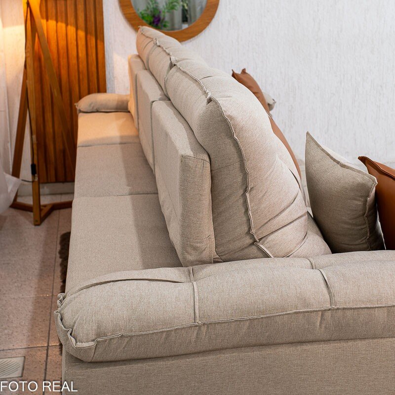 Sofá Retrátil Reclinável Mônaco 3.20m Linho Bege A57 – Molas Ensacadas